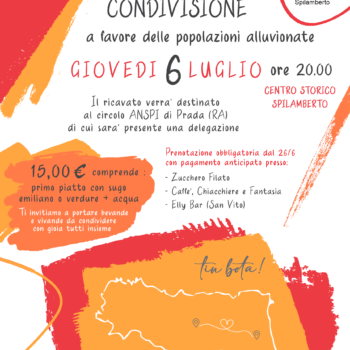 Come dice il nome dell’evento si tratta di una cena di raccolta fondi a favore del circolo ANSPI di Prada (RA), fortemente colpita dalle recenti alluvioni.