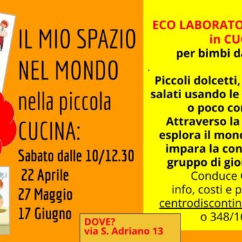Laboratorio di piccola cucina di dolcetti e snack salati dove trovare il piacere di esplorare il contatto con le farine, con la trasformazione dei prodotti fatti con le proprie manine.
