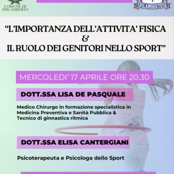 Incontro sull’importanza dell’attività fisica e il ruolo dei genitori nello sport grazie agli interventi delle Dott.se Lisa De Pasquale ed Elisa Cantergiani