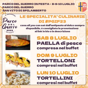 In ogni serata inoltre sarΓ presente unaΒ βguest starβ culinariaΒ diversa: sabatoΒ paella valenciana, domenicaΒ Tortelloni e lunedì tortelliniΒ rigorosamente fatti a mano.