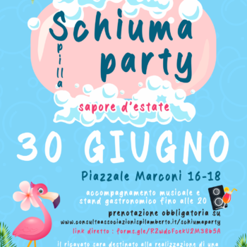 Alle ore 16 inizierà l’esplosione di schiuma per terminare alle 18.oo, ma la festa continuerà fino alle ore 20.00 con accompagnamento musicale